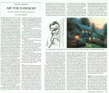 I’ve always had a kind of perverse curiosity about anything in culture that has become enormously popular and successful and I don’t know why. Frequently it’s something that I don’t like, or that I don’t consider especially admirable, and yet it had managed to become enormously popular. I’m very curious about populism in every way. What is it that connects with so many people? Thomas Kinkade was a perfect example of that, because when I first saw the paintings I thought: “These are absolutely horrible! I can’t believe they’re so popular. What’s the DNA of something that has communicated with so many people?” It absolutely fascinates me. In fact, I think I’m better at looking at these things when I don’t have an emotional connection to the content, because then I’m really looking at it from the distance of: “Explain to me how this connects.” Why and how did this become embraced? How did this become something that so many people care about? Especially if I don’t personally like it. I also think that we need to spend more time thinking about that. It’s very easy to be elitist and then miss the big picture. Thomas Kinkade is not a dumb guy, and he made some very salient points about modern art and how a lot of modern art simply has no meaning to many people, except for art critics, and that’s a real question to ask. What does that mean then? What’s the meaning of art if nobody takes any pleasure out of it apart from a group of people who’ve designated themselves as tastemakers? At the same time, not everything is valuable because it’s popular, but I think there’s a great story that you can tell about culture through those things that become embraced by great numbers of people. There’s a mechanism to it as well. It’s not purely organic, it’s marketed and it’s meant to be popular. It’s quite different from a viral video where something a guy made on his flip-camera is suddenly and unexpectedly embraced by millions of people. This is something that involved strategic decisions to make something popular, and I find writing about that very interesting. I also think it’s a real challenge for me intellectually to try to write objectively about something that personally is not to my taste. Thomas Kinkade was really a rewarding story, because he was not a fool. He asked questions which are legitimate about what popularity means, and what is art? If something makes people happy, how can you say that it’s not good? They’re all very good questions to ask, especially in an era where art in many cases has become so distanced from most people. They just cannot understand how it can be valued the way it is valued. I love those stories. I loved writing about music when I was at Rolling Stone. I stopped writing about the music I liked because I preferred just listening to it, so I then became very interested in groups who became hugely popular and how that came about and why, and for that matter what it was like for those musicians in those bands. I guess I’m an amateur anthropologist. What I look for are things that define culture, and those are in some cases very limited and elite, and in many cases they’re the things that are consumed in a much broader way.