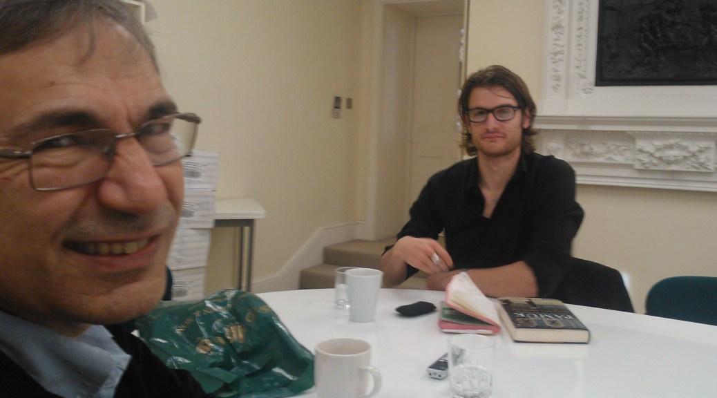 While he was speaking Pamuk has taken his digital camera out of his jacket pocket, and has crooked his arm over his shoulder so that he can photograph himself with me in the back of the shot. The phrase ‘MySpace pose’ flashes across my mind. I tell him I don’t mind as long as he takes one for me as well. He does.
