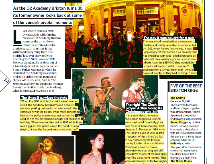 Last week’s raucous NME Awards bash at Brixton Academy came as the much-loved venue celebrates its 30th anniversary. Having witnessed everything from The Smiths’ last ever show, Kylie duetting with Nick Cave and Pete Doherty dangling Kate Moss out a backstage window, it’s now surprise that Pete’s erstwhile Libertines sparring partner Carl Barat has admitted: “Brixton was always the one.” Former owner Simon Parkes was just 23 when he launched the Academy as a venue, and as he publishes his memoir of three riotous decades, Live At The Brixton Academy, he guides us through 5 moments that made the Academy what it is today.