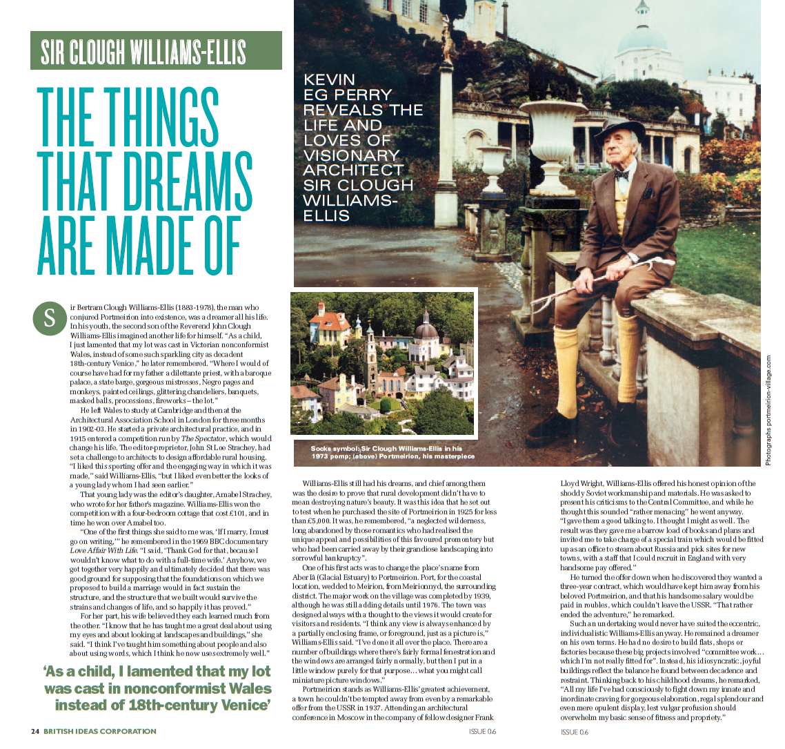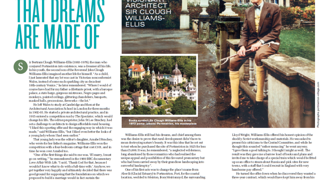 Clough Williams-Ellis, the man who conjured Portmeirion into existence, was a dreamer all his life. In his youth the second son of the Reverend John Clough Williams-Ellis imagined another life for himself. “As a child I just lamented that my lot was cast in Victorian non-conformist Wales instead in some such sparkling city as decadent 18th Century Venice,” he later remembered.