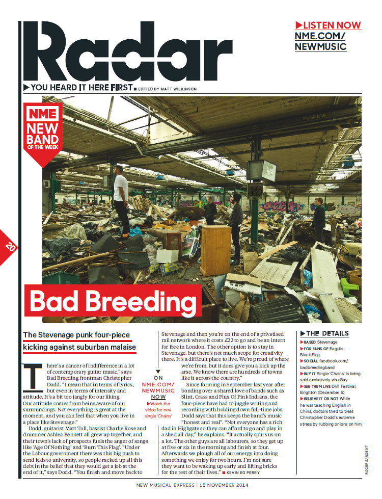 “There’s a cancer of indifference in a lot of contemporary guitar music,” says Bad Breeding frontman Christopher Dodd. “I mean that in terms of lyrics but even in terms of intensity and attitude. It’s a bit too jangly for our liking. Our attitude comes from being aware of our surroundings. Not everything is great at the moment, and you can feel that when you live in a place like Stevenage.”