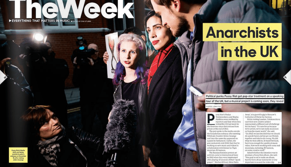 Pussy Riot’s Nadya Tolokonnikova and Masha Alekhina were mobbed by reporters and fans when they visited the UK last week for the first time since their release from prison at the end of 2013.