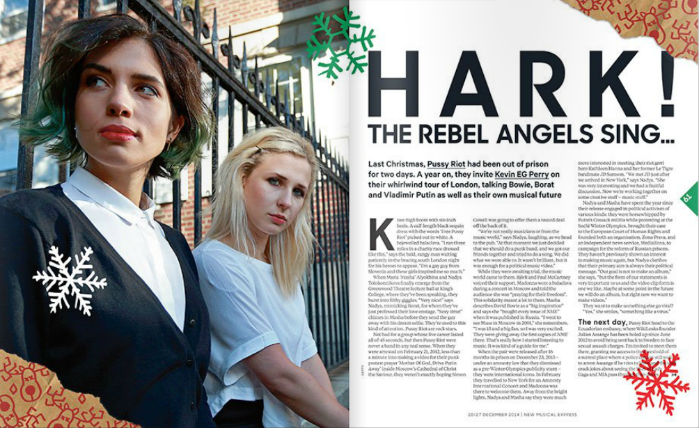While they were awaiting trial the music world came to them. Björk and Paul McCartney voiced their support. Madonna wore a balaclava during a concert in Moscow and told the audience she was “praying for their freedom.” This solidarity meant a lot to them. Masha is the sort of music fan who describes David Bowie as a “big inspiration” and says she “bought every issue of NME” when it was published in Russia. “I went to see Muse in Moscow in 2001,” she remembers. “I was 13 and a big fan, so I was very excited. They were giving away the first copies of NME there. That’s really how I started listening to music. It was kind of a guide for me. I didn’t have anything except NME.”