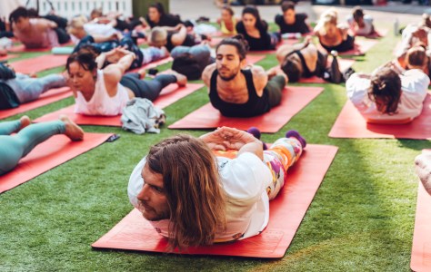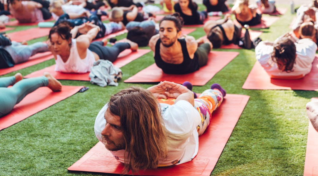 I was lying flat across the backseat of the car in a cocoon of blankets and self-loathing when the email came through. I could hear my editors discussing it up front. Humongous, Grammy-bothering dance act Above & Beyond are apparently about to release a new album designed specifically for yoga and meditation, and they’re running a post-Glastonbury yoga session in a yard in Victoria. One of my editors jerked his thumb towards the back seat. “Kev’ll do it,” he said. I didn’t hate the idea. Maybe it’ll be just what I need to return my broken body to some state of normalcy. What they don’t tell me is that it starts at 8am. Bastards.