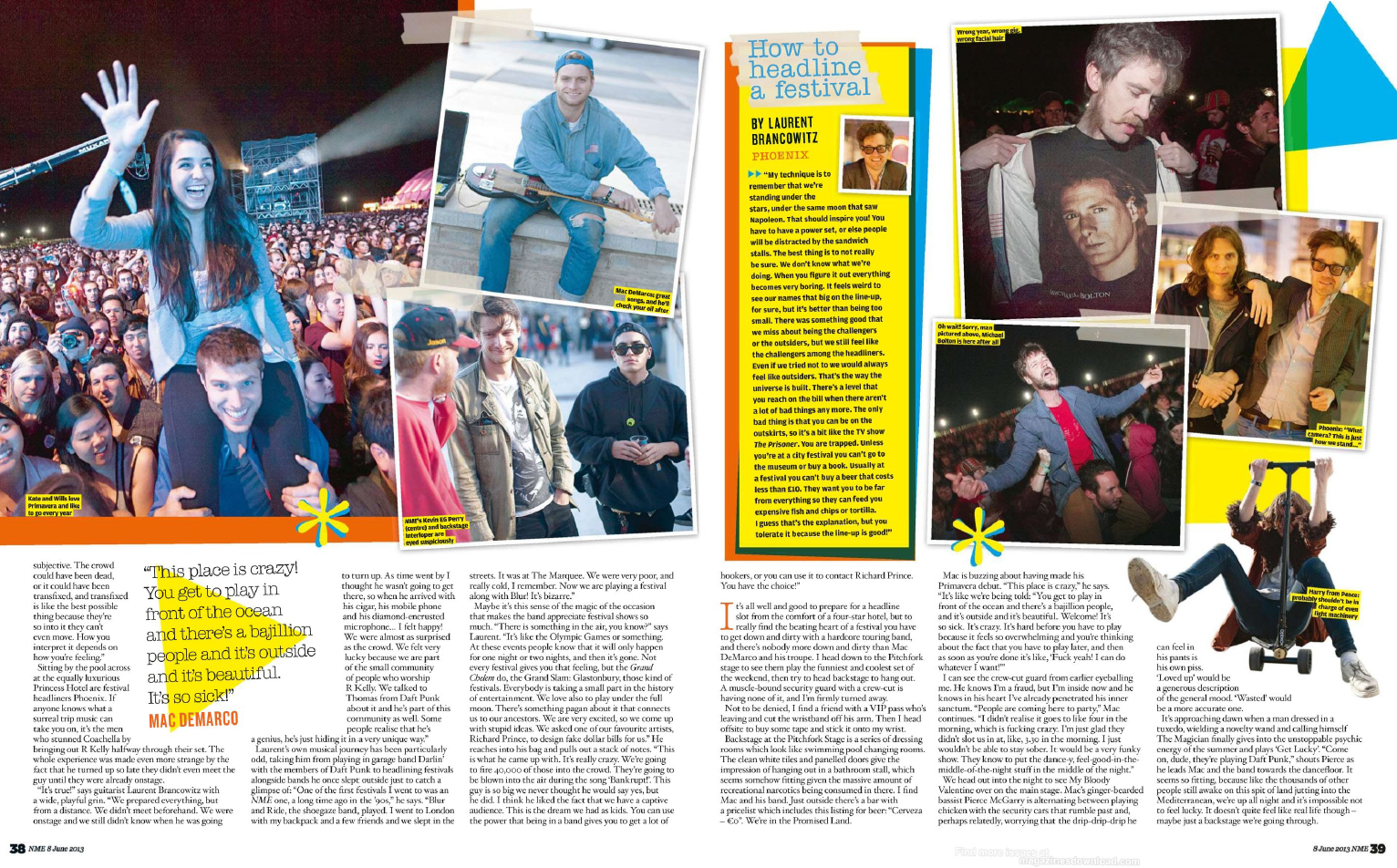 Watching the Glastonbury crowd lose their shit was the culmination of a journey that started in the suburbs of Sydney. Jono and his brother Dave grew up with a father whose hobby was training racing dogs, living in what Jono calls a “shitty fibre house in a shitty suburb, with six or seven greyhounds at any given time”. They escaped into music and art, with Dave eventually finding his way to England where he was essentially known as an extra member of Foals for a while, creating all the band’s early artwork and most of their music videos into the ‘Holy Fire’ era.