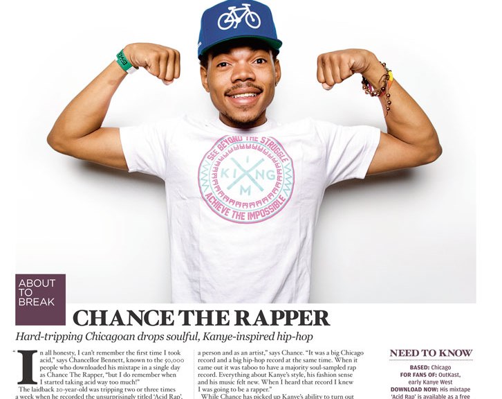 “In all honesty, I can’t remember the first time I took acid,” says Chancellor Bennett, known to the 50,000 people who downloaded his mixtape in a single day as Chance The Rapper, “but I do remember when I started taking acid way too much!”