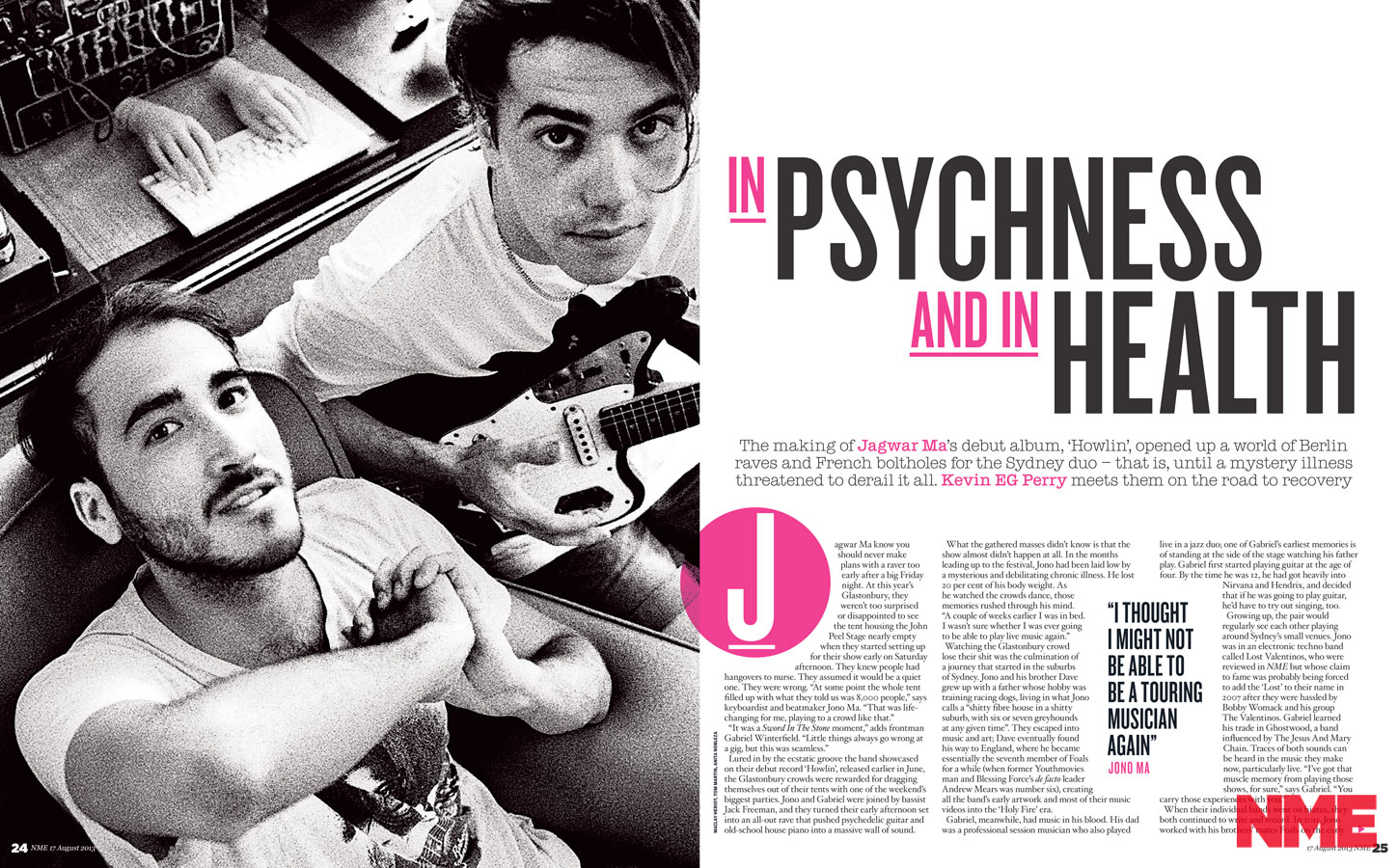 Jagwar Ma know you should never make plans with a raver too early after a big Friday night. At this year’s Glastonbury, they weren’t too surprised or disappointed to see the John Peel tent nearly empty when they started setting up for their show early on Saturday afternoon. They knew people had hangovers to nurse. They assumed it would be a quiet one. They were wrong. “At some point the whole tent filled up with what they told us was 8,000 people,” says keyboardist and beatmaker Jono Ma. “That was life-changing for me, playing to a crowd like that.”