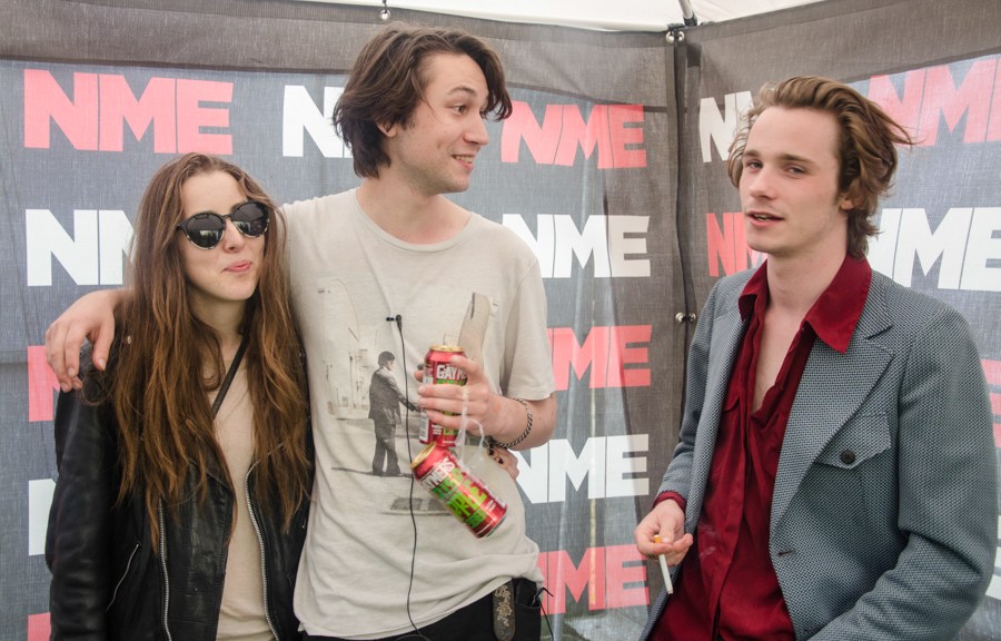 Palmas arrive and pile off their tiny van, stretching their legs after five hours on their bus. Drummer Will is philosophical, pointing out that after touring the States even the length of the UK feels like a relatively civilised distance now. Daniel, a Palmas super fan from Newcastle, has brought along his NME New Bands Issue so that Palma Violets can sign their joint cover with Haim. Someone has drawn a comedy moustache on Will’s face. He’s not happy.